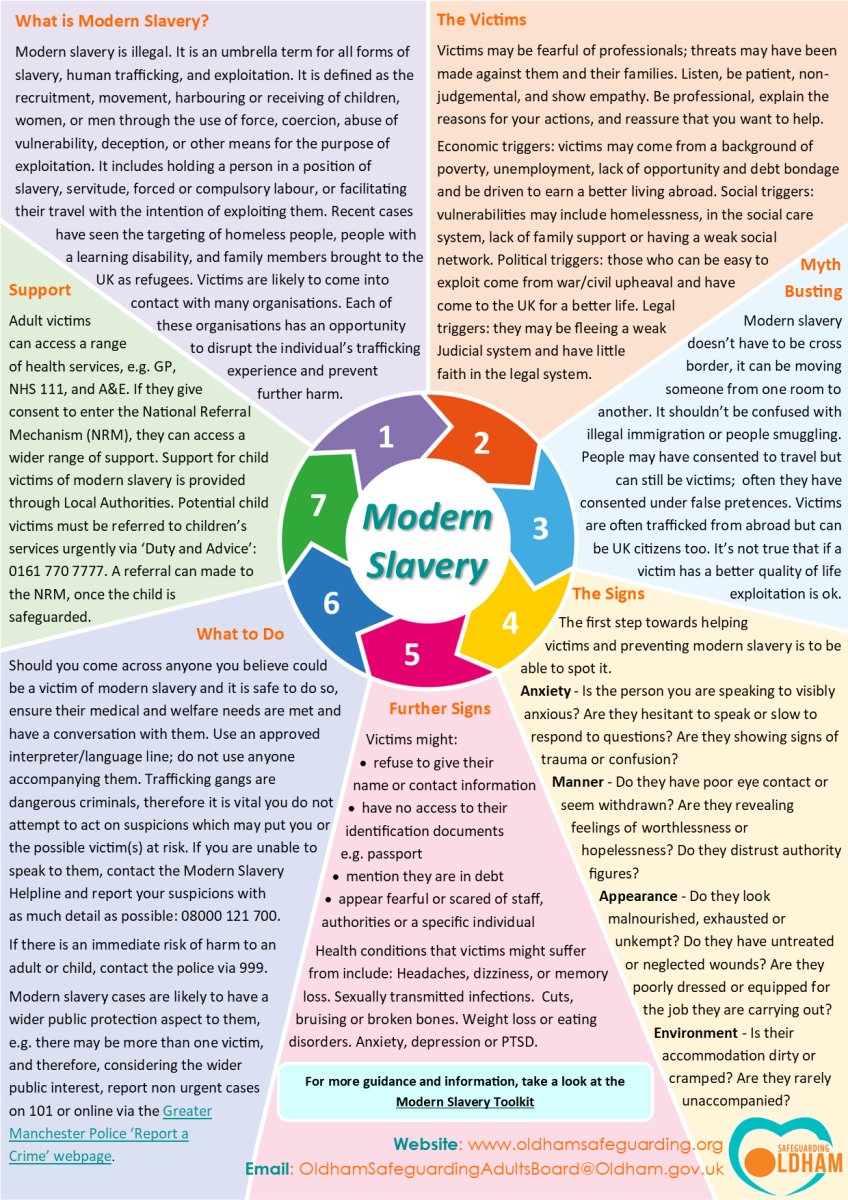 The recently published Adult Complex Safeguarding and Exploitation Strategy set out Oldham’s understanding of adolescent and adult exploitation and how partners will work together to improve the lives of those at risk of exploitation.